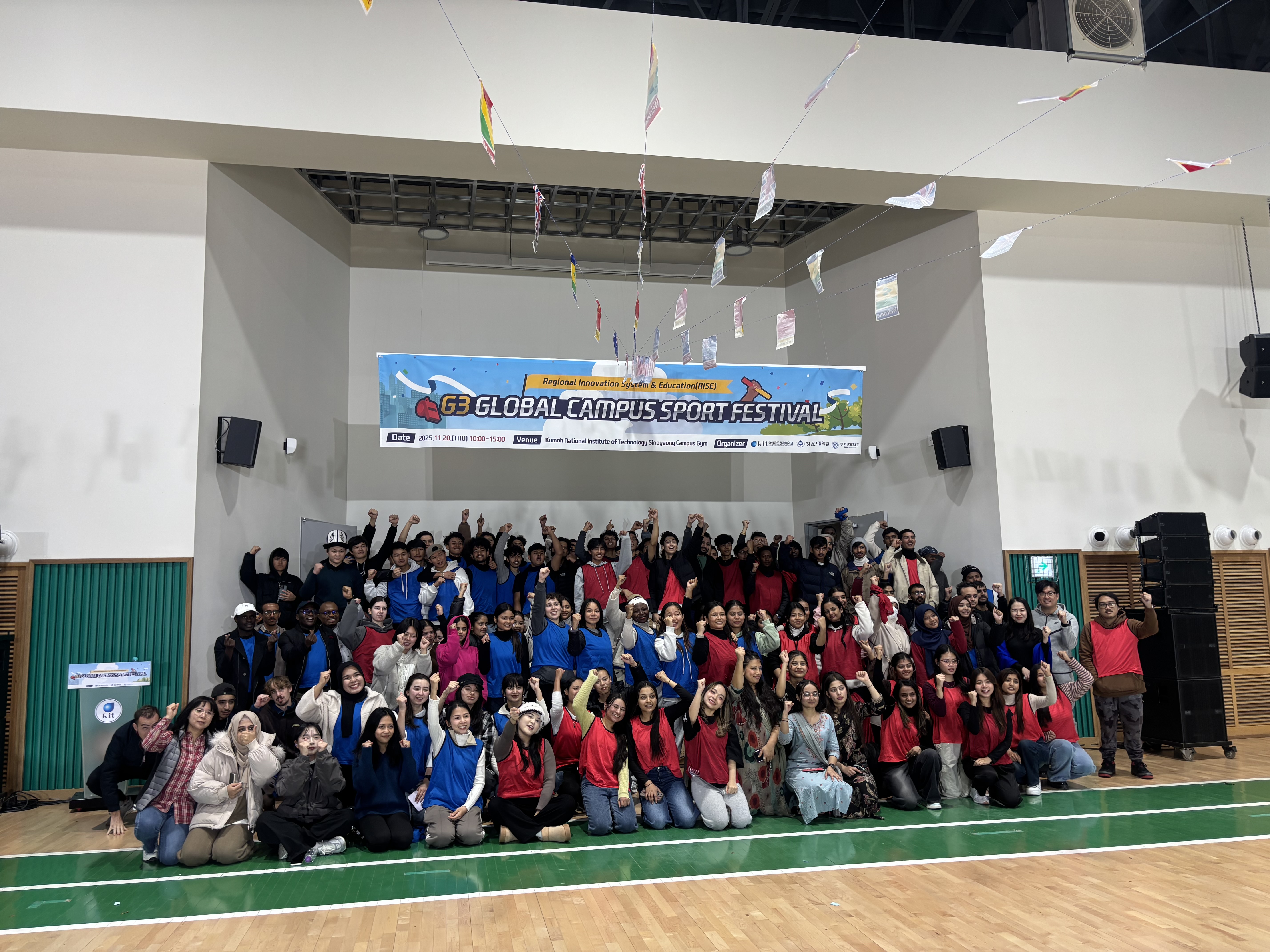 1. 행사명: 2025 G3 글로벌 캠퍼스 스포츠 페스티벌2. 일 자: 2025. 11. 20.(목)3. 장 소: 국립금오공과대학교 신평캠퍼스 실내체육관4. 내 용 - 외국인 유학생들의 체육 활동을 통해 친목과 문화 교류 확대 및 건강 증진 - 유학생들의 리더십, 협동심 함양으로 다양한 전공 국적 학생들과 함께 참여함으로써 상호 이해활동 증진